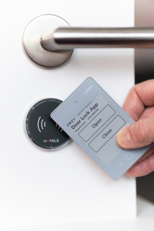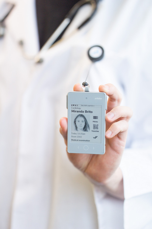 E Ink's customer Infrafon utilized 2.8 inch ePaper displays to develop a smart badge solution for healthcare. This eBadge can improve process efficiencies in hospitals including logging check-in and time tracking, provide smart paging, payment information, information on medication and samples, workplace safety messaging, access to medication and equipment, provide infection chain tracking, and more.