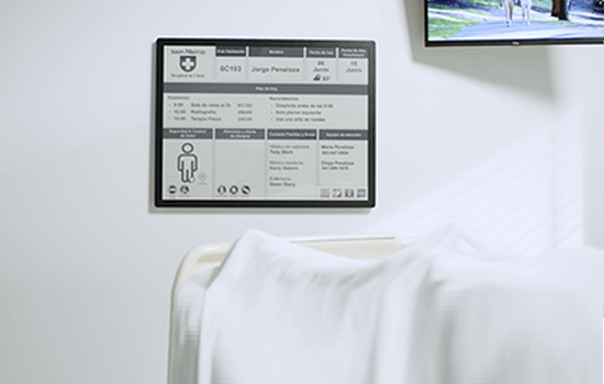As with the Patient Room Door Sign and Patient Care Sign, the Patient Communication Board can connect to a hospital or facility's EHR / EMR system so updates can be pushed in real-time.